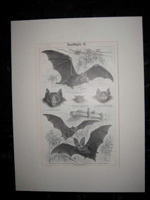 My husband found this great shop Markle Meyers, ltd. that sells antique prints. Knowing my love bats (I even got a tattoo of one 30 or so years ago), he chose a print of Vampire Bats from him and PGP as a little anniversary gift. All of their prints come complete with certificate of authenticity. This one is from 1894. He also got me a great collection of postcards, which I'll frame. I'll definitely be going back there, just looking at their online selection has given me so much decor inspiration!